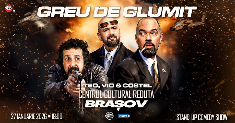 Teo, Vio și Costel sunt trei comedieni români talentați, cunoscuți în scena stand-up din România prin apariții în cluburi și festivaluri de umor. Deși informații detaliate despre carierele lor individuale sunt limitate, ei s-au remarcat prin colaborări în show-uri colective, aducând un suflu nou comediei locale. Cu experiență acumulată în spectacole live, aceștia au captat atenția publicului brașovean prin umorul lor direct și captivant. Stilul lor de umor este energic și interactiv, axat pe teme cotidiene precum relațiile de cuplu, viața de familie, diferențele generaționale și observații amuzante despre societatea românească. Predomină glumele cu tentă adultă, pline de ironie și autoironie, potrivite unui public matur care apreciază umorul nefiltrat, fără a fi exagerat vulgar. La spectacolul 'Greu de Glumit cu Teo, Vio și Costel - Stand Up Comedy Show 1' de la Centrul Cultural Reduta, pe 27 ianuarie 2026, ora 18:00, vei avea parte de un show dinamic de aproximativ o oră și jumătate, cu momente solo și interacțiuni între cei trei. Așteaptă-te la râsete garantate, crowd work spontan și energie debordantă într-o atmosferă relaxată – ideal pentru o seară de divertisment adult.[1]