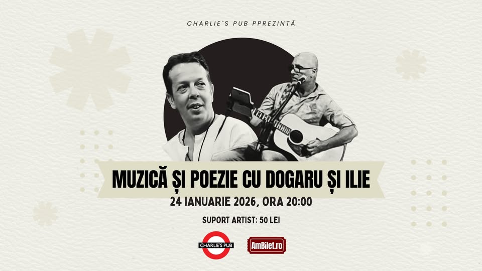 Evenimentul „Muzică și poezie cu Dogaru și Ilie” este un concert intim și autentic, unde muzica live se împletește armonios cu poezia, emoția și poveștile spuse cu suflet. Participanții vor asculta versuri profunde care ating inima, melodii memorabile și vor trăi o atmosferă caldă, aproape de artiști. Va fi o seară perfectă pentru a evada din rutina zilnică, bucurându-se de un spectacol live captivant. Evenimentul este dedicat iubitorilor de muzică sinceră și poezie autentică, atât începătorilor cât și pasionaților experimentați – tuturor celor care apreciază serile intime și emoționale. Veți experimenta conexiuni profunde prin artă, veți descoperi noi moduri de a simți muzica și poezia, și veți pleca cu amintiri de neuitat dintr-un mediu relaxat și primitor. Organizatorii sunt Dogaru și Ilie, iar evenimentul are loc pe 24 ianuarie 2026, la ora 18:00, la adresa Iosif Bulbuca nr. 20, 300736 Timișoara, România (Charlie's Pub). Biletele costă 50 lei, locurile sunt limitate. Nu sunt necesare pregătiri speciale, doar veniți cu sufletul deschis. Verificați orele exacte și regulile de acces pe paginile oficiale ale organizatorilor.