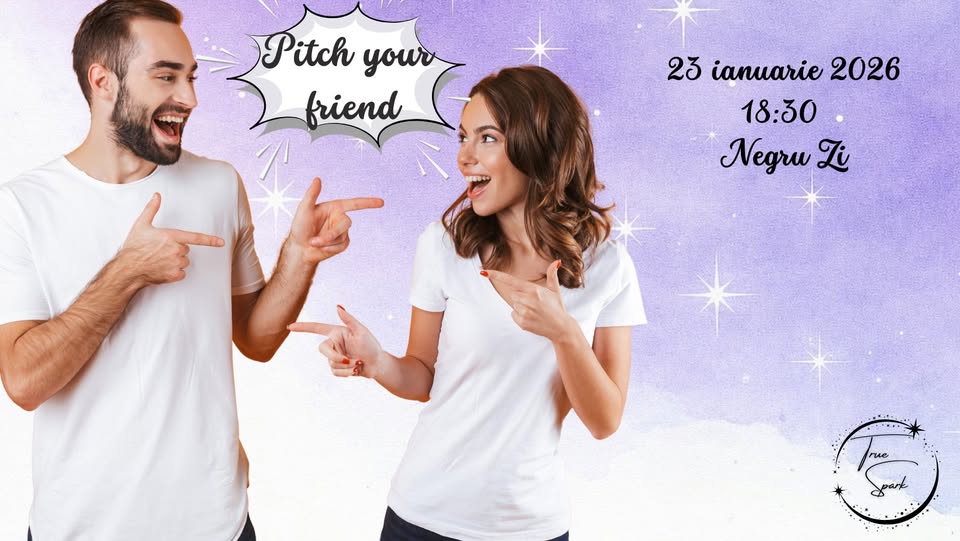 Pitch Your Friend este un eveniment unic și distractiv de tip networking, unde participanții vor juca rolul de promotori pentru prietenii lor. Ghidați de două gazde pline de energie, vei prezenta calitățile, poveștile și trăsăturile amuzante ale amicului tău în fața unei săli întregi. Este o reinterpretare creativă a jocului întâlnirilor, perfectă pentru a descoperi noi conexiuni și a te distra în grup.[\n\n]Evenimentul este ideal pentru tineri, prieteni curajoși, persoane sociabile sau oricine dorește să învețe să pitch-uiască eficient, să construiască relații noi și să experimenteze adrenalina scenei. Fie că ești începător sau profesionist în comunicare, vei învăța să pui în valoare oamenii din jur, să creezi conexiuni autentice și să te bucuri de momente pline de umor și inspirație. Nu sunt necesare pregătiri speciale, dar vino cu un prieten pe care să-l promovezi![\n\n]Evenimentul este găzduit la Negru Zi - coffee & arts din Iași, pe 23 ianuarie 2026, începând cu ora 18:00. Rezervă-ți locul din timp prin platforme precum onevent.ro sau allevents.in. Atmosfera relaxată a locației, cu cafea și artă, completează perfect vibe-ul creativ. Intrare probabil gratuită sau cu bilet accesibil – verifică detaliile online.