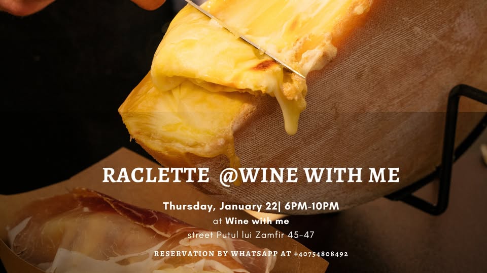 Raclette este un eveniment gastronomic special organizat de Wine with Me, unde participanții vor putea savura o experiență culinară autentică combinând brânzeturi topite cu vinuri fine. Evenimentul se adresează tuturor iubitorilor de gastronomie și vin, indiferent de nivelul de experiență, oferind o atmosferă relaxată și convivială pentru a descoperi perechile perfecte între raclette și vinuri premium. Vizitatorii vor avea ocazia să deguste brânzeturi de calitate superioară pregătite în stil tradițional, alături de o selecție curatată de vinuri care se potrivesc perfect cu această mâncare clasică. Experiența este ideală pentru cei care doresc să-și lărgească cunoștințele despre gastronomie și să se bucure de o seară memorabilă în compania altor pasionați. Eventul este găzduit de Wine with Me, un spațiu dedicat entuziasților de vin și gastronomie din București, situat pe Strada Puțul lui Zamfir. Participanții sunt invitați să vină pregătiți pentru o experiență culinară autentică, într-o atmosferă caldă și primitoare, unde rafinamentul și pasiunea pentru vin sunt în centrul atenției.