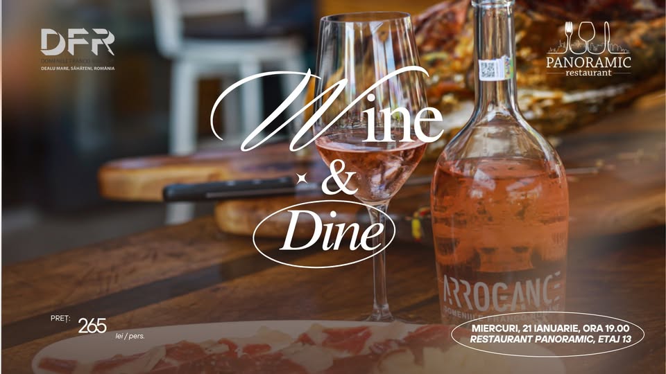 Evenimentul Wine & Dine la Restaurant Panoramic este o **degustare de vinuri** organizată în parteneriat cu Domeniile Franco-Române. Participanții vor savura o selecție premium de vinuri franțuzești și românești, împerecheate cu preparate culinare rafinate pregătite de bucătarii restaurantului. Activitățile includ degustări ghidate, discuții despre caracteristicile vinurilor și pairing-uri perfecte cu mâncărurile, toate într-o atmosferă elegantă cu vedere panoramică asupra orașului Iași. Evenimentul este destinat **pasionaților de vinuri, începătorilor curioși și profesioniștilor din HoReCa**, oferindu-le ocazia să descopere arome unice, să învețe tehnici de degustare și să experimenteze armonii culinare excepționale. Fiecare participant va primi informații detaliate despre podgoriile Domeniile Franco-Române, istoria vinurilor și sfaturi practice pentru alegerea și servirea băuturilor. Nu sunt necesare cunoștințe prealabile, doar poftă de descoperire. Evenimentul este **găzduit de Hotel Unirea, Restaurant Panoramic** (Str. Piaţa Unirii nr. 5, etaj 13, Iași), miercuri, 21 ianuarie 2026, începând cu ora 19:00 (conform surselor oficiale; ora 18:00 menționată inițial poate varia). Rezervările se fac prin site-ul hotelului sau onevent.ro. Prețurile și meniul detaliat sunt disponibile pe loc. Vă recomandăm să veniți îmbrăcați elegant; nu sunt necesare obiecte suplimentare.
